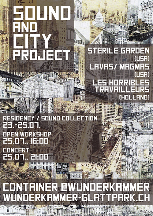 Drei Künstler aus drei Städten machen in ihrer Wunderkammer-Residency die Stadt zum Subjekt: Drei Tage lang nehmen sie im Rahmen ihres Sound and City Projects Klänge der Stadt auf und verarbeiten diese am Dienstag in einem offenen Workshop zu Soundcollagen und schliesslich zu konzertanten Experimental-Solis – alle sind dazu herzlich eingeladen! Um ihr stetig wachsendes internationales online Sound-Archiv zu erweitern und lokales Wissen abzuholen, arbeiten die drei Klangkünstler jeweils mit ansässigen Künstlern zusammen, auch in Zürich. Die aufgenommenen field recordings werden ins Archiv aufgenommen und können von da jederzeit wieder online heruntergeladen werden. Meldet euch also, wenn ihr beim Sound and City Project mittun möchtet!