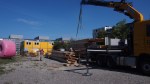 Fünf Zimmerleute haben den Sattelschlepper in Baden beladen, in der Wunderkammer nahmen Christian und Vesna vom Vorstand sowie Tobi von 2×2 Architekten die Balken in Empfang. Am Ende des langen und heissen Tages lagen die Balken der Holzkonstruktion fein säuberlich geordnet auf der Kiesfläche und warten nun auf Baubewilligung und Bautruppe. Und ihre nächsten Nutzer/innen: Gerne nimmt die Wunderkammer Vorschläge von Nachhaltigkeitsinitiativen, KünstlerInnen, Elektronik-Freaks oder anderen innovativen Leuten entgegen, die hier gemeinsam mit anderen eine neue Welt erschaffen wollen!