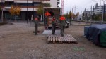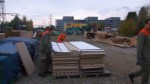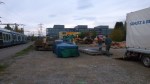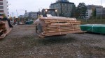 Während Christian und der Staplerführer 50m3 Holz verschoben, kamen die Zivilschützer mit einer Ladung Spanplatten von der Shedhalle der Roten Fabrik. Sowas nennt man 1. Solidarität zwischen Kunstprojekten und 2. AKTIVE staatliche Kulturförderung und Umweltschutz! Denn weggeworfen wird bei uns nichts. Ihr seid hammer, Jungs!
