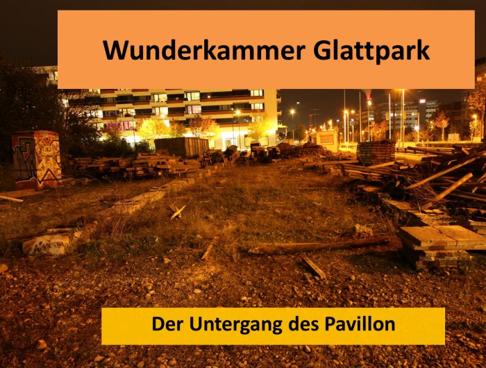 Es hat wahnsinnig weh getan, die Geschichte der Pavillon-Zerstörung für den Master Dialog „Sichtbarkeit partizipativer Projekte“ aufzuarbeiten. Nach Wochen unbeschreiblicher Aggression und Trauer hab ich dennoch für den Workshop der Hochschule Luzern die ganzen Hintergründe – Konzepte, e-mails, Medien, Dokumentation etc. – zu einer Präsentation verarbeitet. In 13 Minuten erfährst du also alles über die Unsichtbarmachung von Autorschaft, Wertschöpfung, Investitionen und Werk der Wunderkammer: https://youtu.be/MH0RAHgl_FI