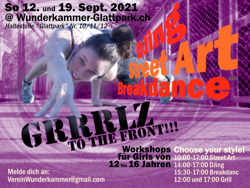 Dieses Jahr steht das Kunstdreieck Festival in der Wunderkammer ganz im Zeichen des Female* Electronic Lab und feiert die Ladies, die an der Kultur-Front stehen. Klar fördern wir auch unseren Nachwuchs und organisieren darum an zwei Sonntagen, dem 12. und 19. September, jeweils drei Mädchen-Workshops in der Wunderkammer: Street Art, Breakdance und DJing stehen auf dem Programm, Vorkenntnisse sind keine nötig.