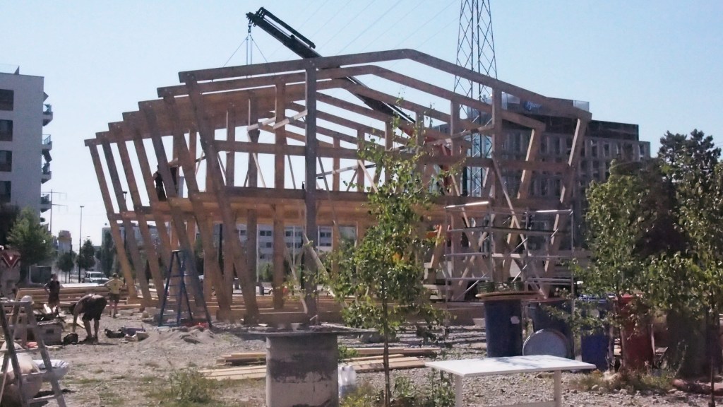 Im August 2018 richten wir nun endlich den Pavillon! Vorgängig hatten wir die Streifenfundamente gebaggert, armiert, geschalt und gegossen, die Binder gebunden. Wir litten viel und manchmal freuten wir uns auch, doch erst nach dem Richtfest kam es richtig dicke: Mit der SVP-Kampagne gegen die Wunderkammer stand plötzlich die Raumbörse auf dem Areal. Daneben geschah natürlich viel anderes: Während der Bauerei präsentierte das Baufestival an 35 Abenden nacheinander Rock, Pop, Jazz, Experimental, Techno oder Punk. Die ersten Quartierentwicklungsstammtische fanden statt und die Wunderkammer nahm mit dem Pavillon am Open House teil.