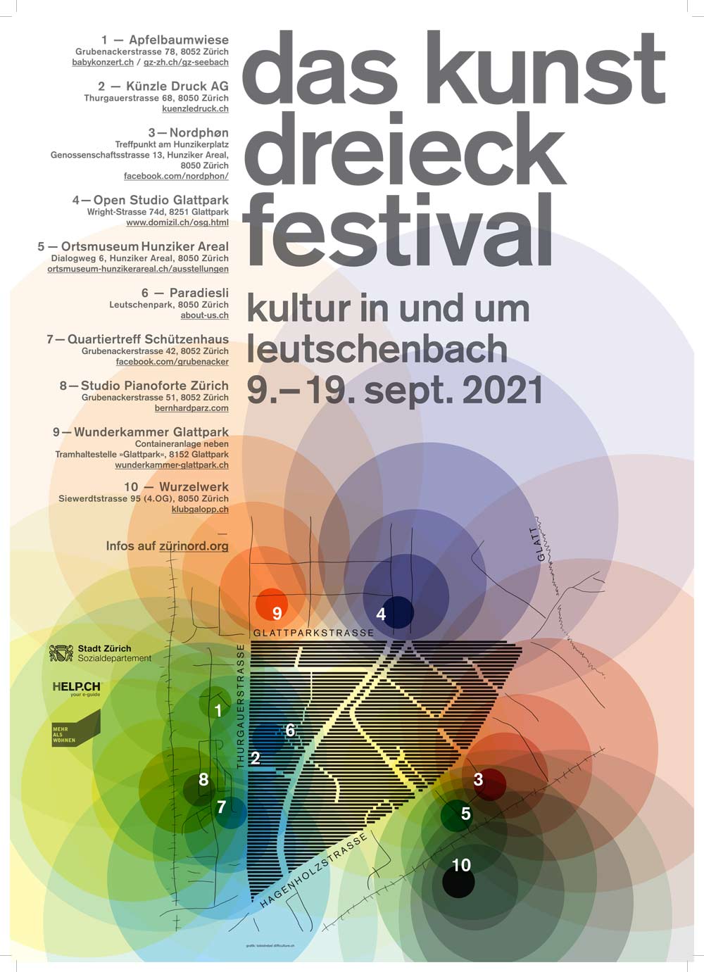 Mit Bernhards Garagenkonzert zum Thema „Fantastisches und Zauberhaftes“ (Föti) startete gestern mit vielen Quartierbewohner/innen das Kunstdreieck Festival im Grubenacker. Heute geht es ab 20:00 weiter im Schützenhaus mit Singer Songwriter und Quartierbewohner Roman Tester. 300 Meter vom Schützenhaus entfernt trägt um 19:30 im Mehr als Wohnen / Hunziker Areal das Nordphon ein Konzert der Singer Songwriterin Nicole zum Festival bei, gefolgt vom Elektropop des Duos digidigi.